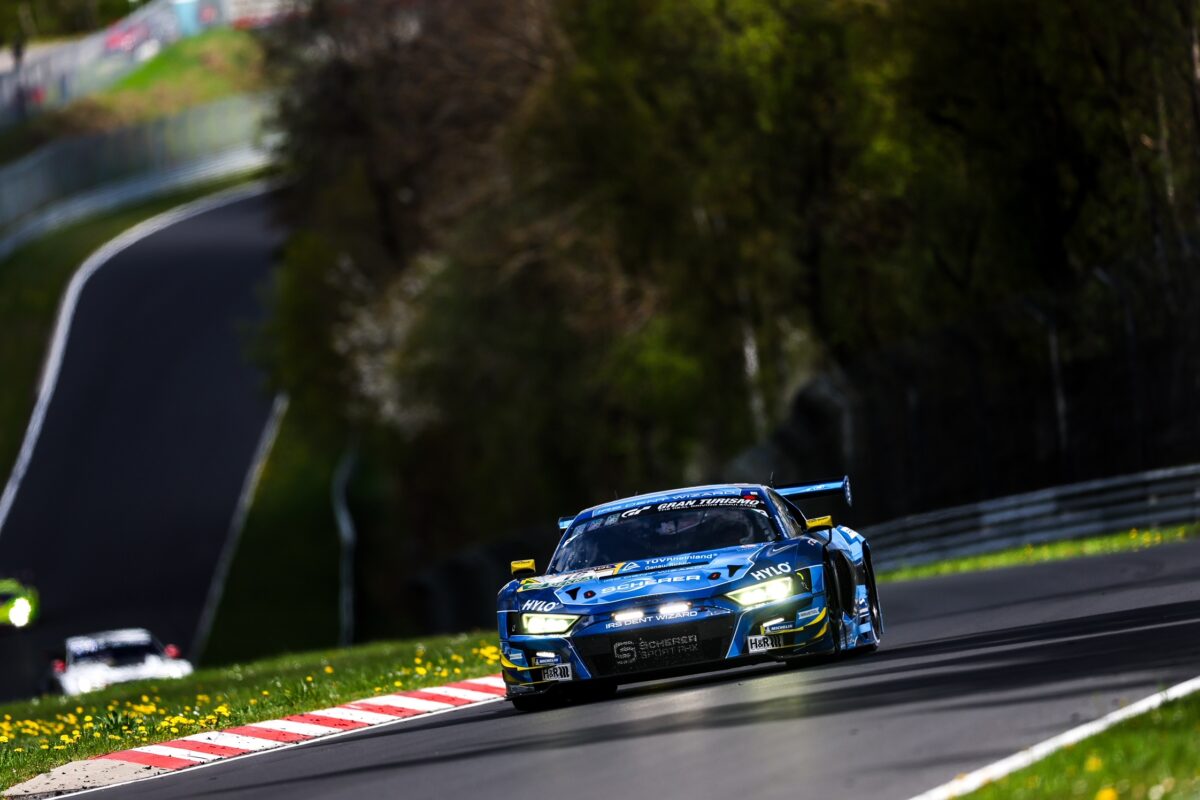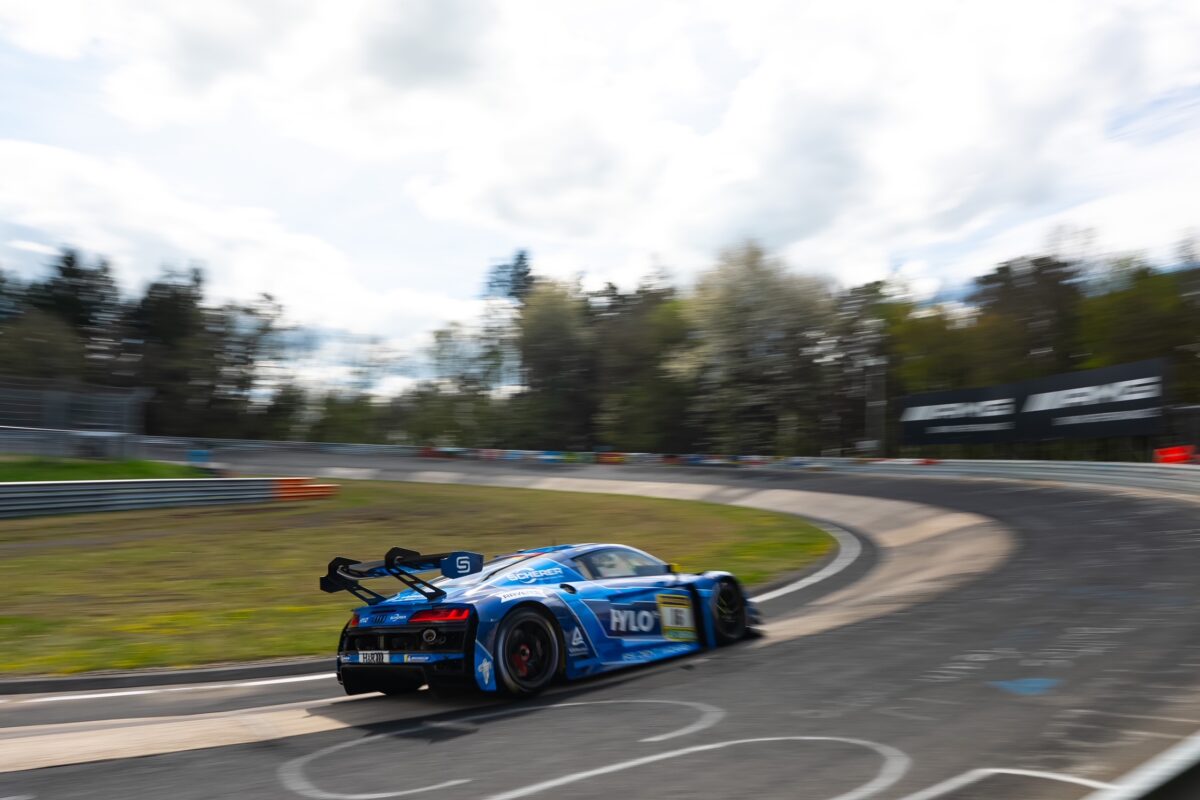 Nürburgring, Germany. (April 19, 2026) – Representing SCHERER SPORT PHX in their No.16 Audi entry, Alexander Sims and teammates Ben Green and Christopher Haase drove to victory in the second race of the ADAC 24h Nürburgring Qualifiers.